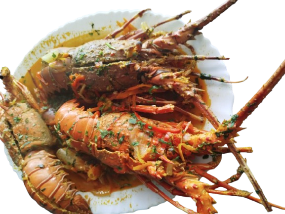 Langostas enteras y jugosas, bañadas en una exquisita y aromática salsa cremosa, acompañada de porción de arroz y patacones .