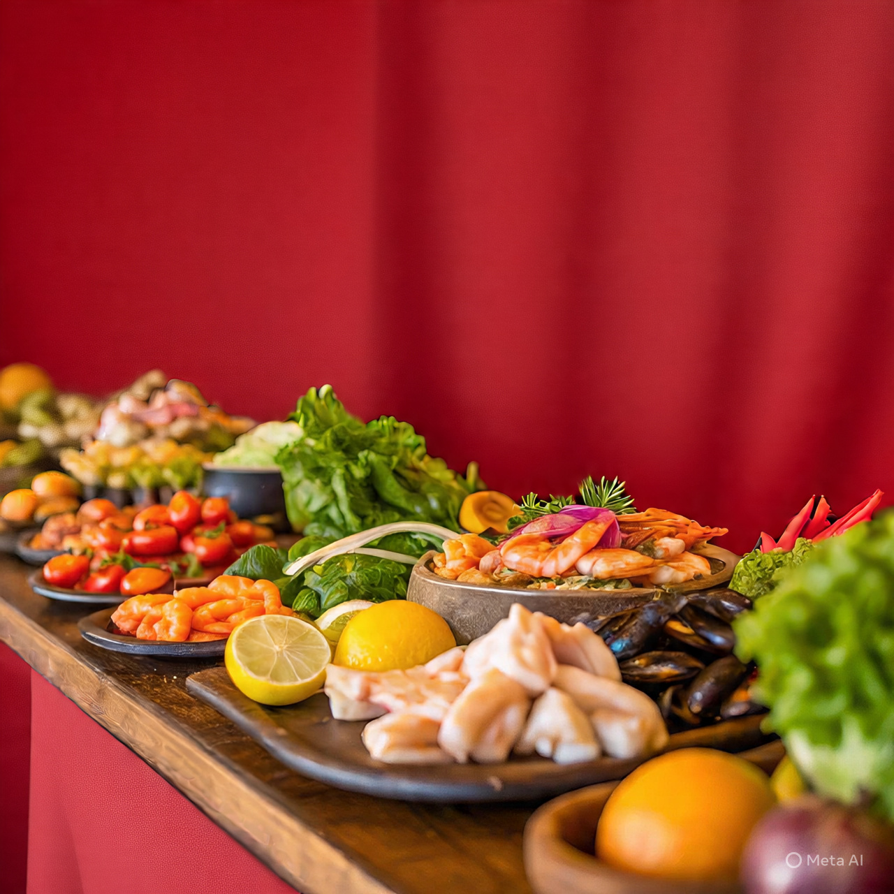 Exquisito plato con una variedad de mariscos : Camarón-Calamar-Pulpo-Pescado-Langostinos -Langosta, bañados en una rica y cremosa salsa de coco.